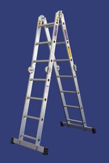 סולמות אלומיניום פרקים 4 חלקים-כולל 2 מוטות הרחבה משני צידי הסולם. משמש כסולם יחיד,כסולם כפול דו צדדי וכפיגום.נוח להובלה בטנדרים.