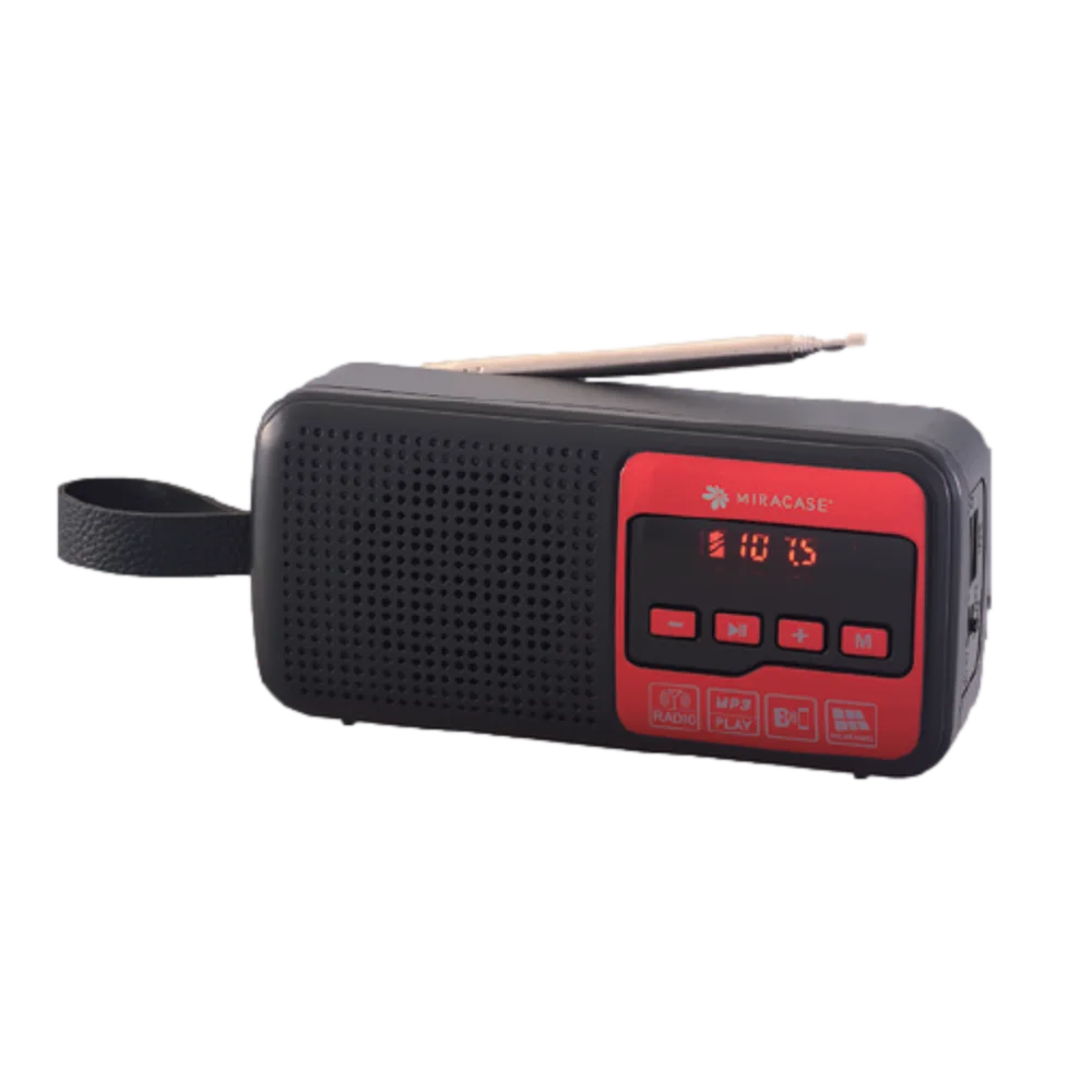 רדיו FM דיגיטלי עם BLUETHOOTH וטעינה סולארית בצבע אדום-שחור